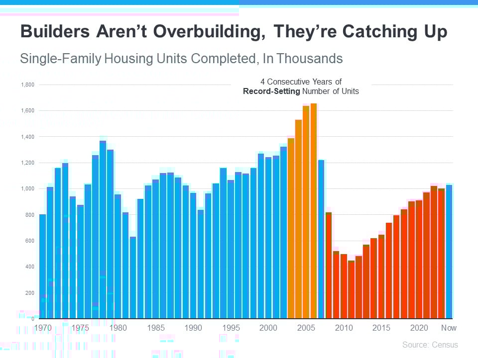 There’s just too much of a gap to make up. Builders aren’t overbuilding today, they’re catching up. A recent article from Bankrate says: