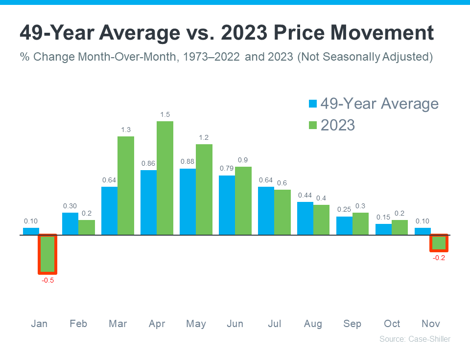 And since the 49-year average is so close to zero during those months (0.10%), that also means it’s not unusual for home prices to drop ever so slightly during those times. But those are just blips on the radar. If you look at the year as a whole, home prices still rose overall.