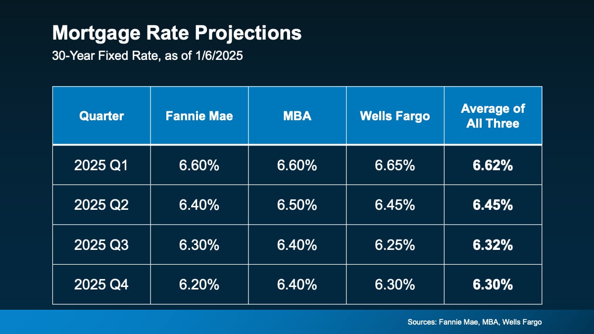 The short answer? Not likely. While mortgage rates are expected to ease, home prices are projected to keep climbing in most areas – just at a slower, more normal pace. If you average the expert forecasts together, you’ll see prices are expected to go up roughly 3% next year, with most of them hitting somewhere in the 3 to 4% range. And that’s a much more typical and sustainable rise in prices (see graph below):