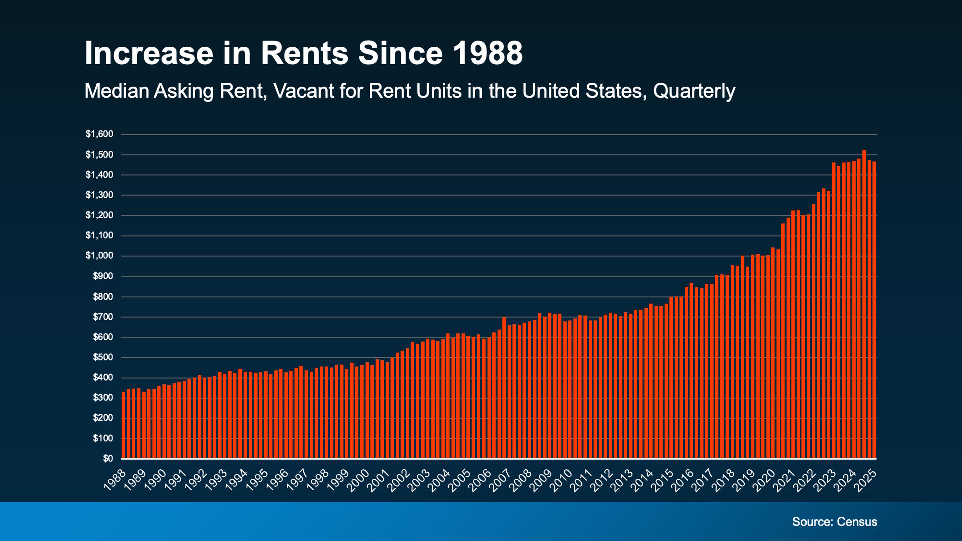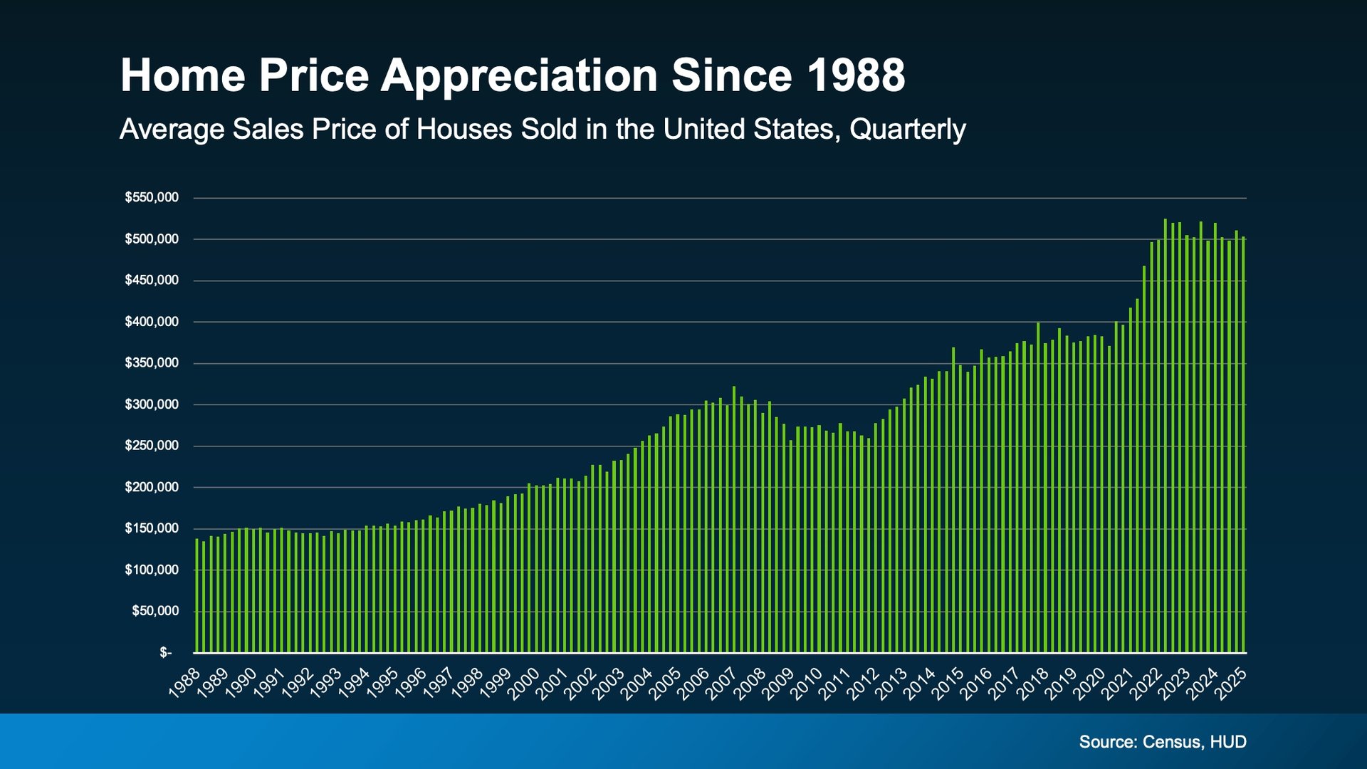 Why? Home prices typically rise over time, which means the longer you wait, the more expensive it is to buy. And even in some markets where home prices are softening today, the overall long-term trend speaks for itself (see graph below):