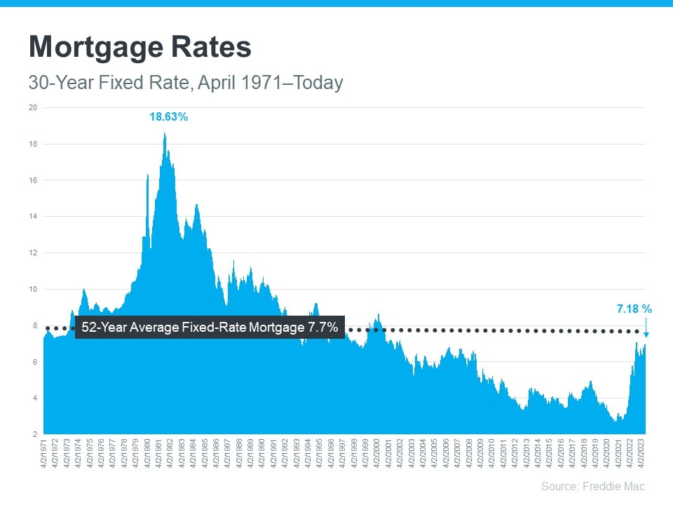 Looking at the right side of the graph, mortgage rates have increased significantly since the start of last year. But even with that rise, today’s rates are still below the 52-year average. While that historical perspective is good context, buyers have gotten used to mortgage rates between 3% and 5%, which is where they’ve been over the past 15 years.