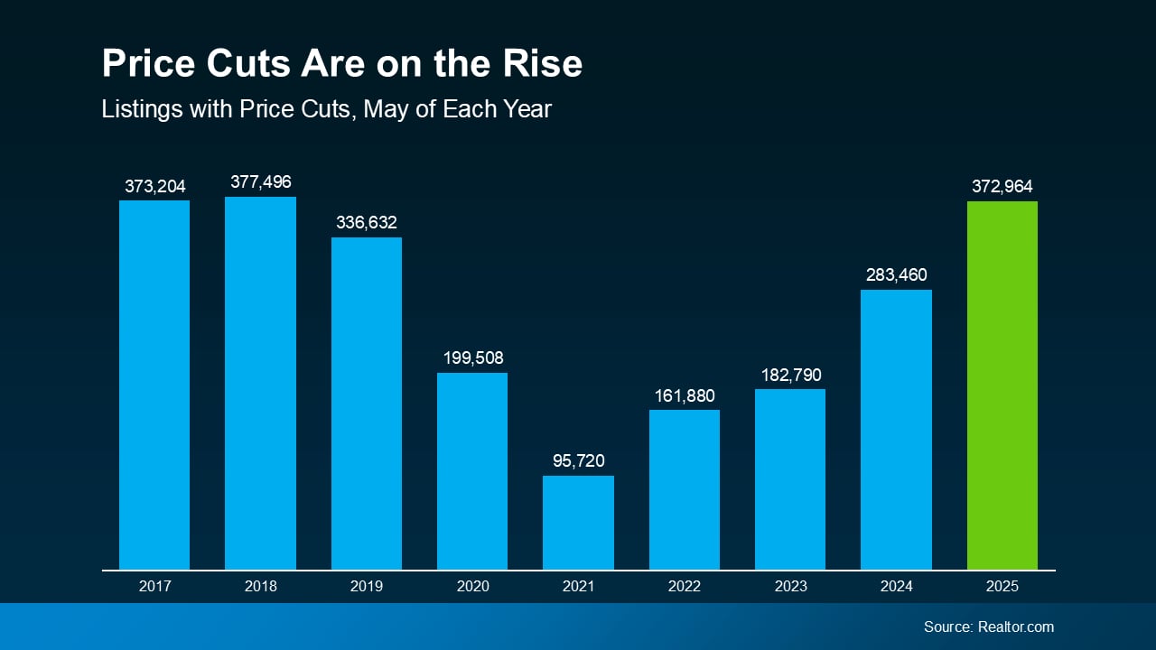 Since homes are taking more time to sell, some sellers are choosing to lower their asking prices to draw buyers back in or speed up the process. And that’s to-be-expected. According to Realtor, 19.1% of listings had a price cut this May (see graph below):