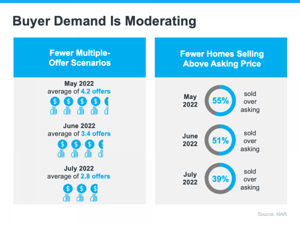 It’s true buyer demand has slowed over the past few months as higher mortgage rates made it more expensive to buy a home. The result is fewer bidding wars and less competition among buyers (see visual below):
