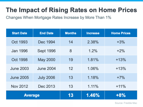 As the chart shows, mortgage rates jumped by at least 1% six times in the last thirty years. In each case, home values increased.