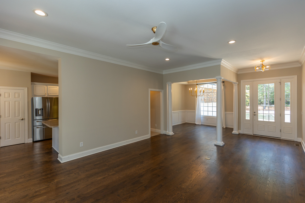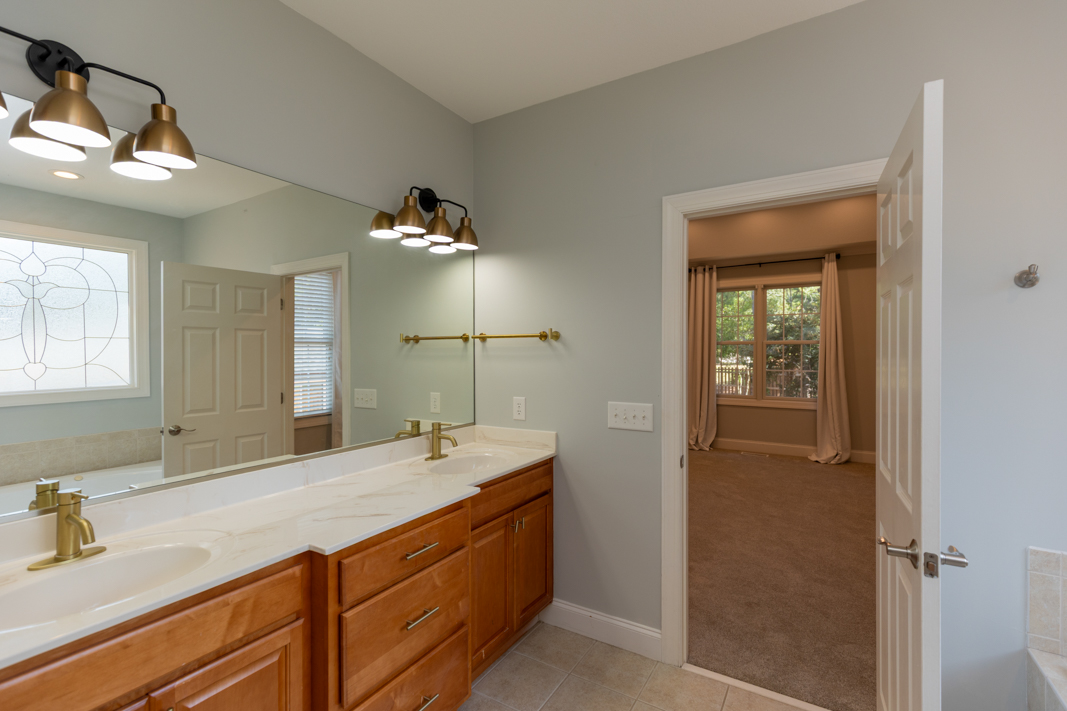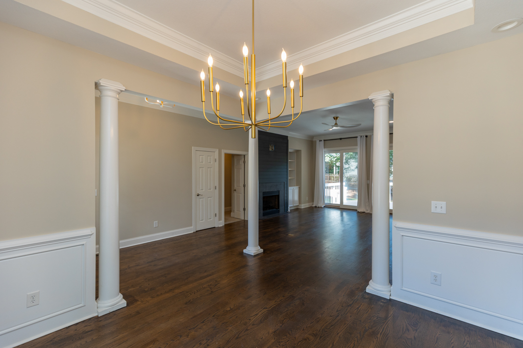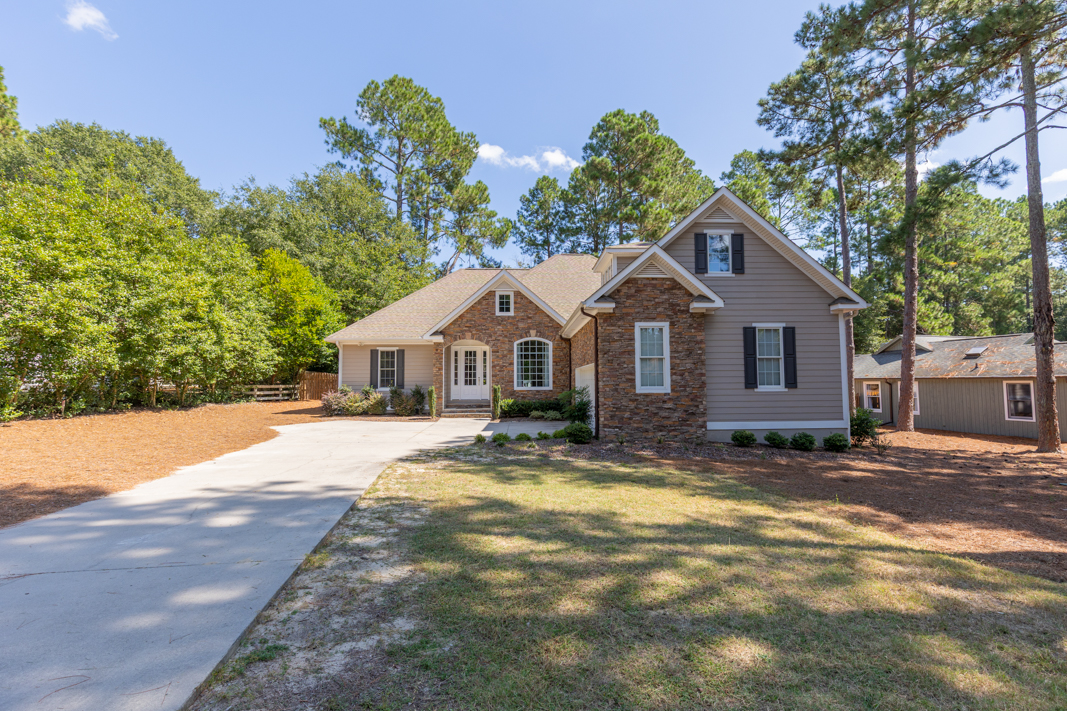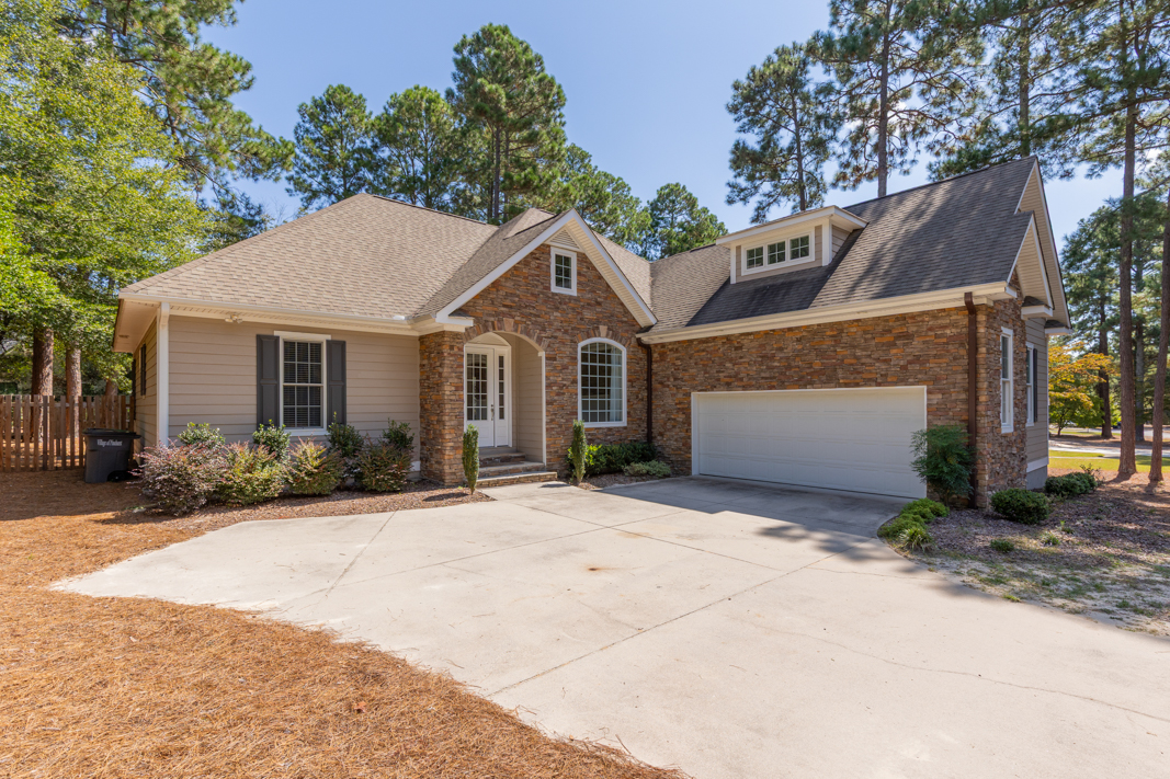 Situated in a great Pinehurst neighborhood, this beautifully maintained 3-bedroom, 3.5-bath home offers style, and comfort. With exceptional curb appeal, the exterior showcases durable Hardiplank siding and stacked stone. Step inside to a bright, open floorplan featuring hardwood floors and soaring 10’ ceilings in the main living areas. The inviting living room includes a gas log fireplace with a floor-to-ceiling tile and wood surround — perfect for cozy evenings. Architectural details shine in the formal dining room, highlighted by white wood columns, a tray ceiling, wainscoting, and a large picture window with an arched transom that floods the space with natural light. The well-appointed kitchen features custom wood cabinetry with pull-out shelving, solid surface countertops, stainless steel appliances, recessed lighting, and a spacious pantry — ideal for any home chef. The split-bedroom layout offers privacy, with the secluded primary suite serving as a peaceful retreat. It includes a deep tray ceiling, crown molding, and large windows overlooking the backyard. The en-suite bath boasts a double vanity, jetted garden tub with etched glass window and decorative ironwork above, a step-in tiled shower, water closet, and a generous walk-in closet. A stylish powder room with wainscoting adds charm for guests. Upstairs, a large bonus room (or potential 4th bedroom) includes a full bath and walk-in closet — perfect for a guest bedroom suite, home office, or rec room. Don’t miss your chance to own this exceptional home in one of Pinehurst’s most desirable neighborhoods! The seller is offering a 2.5% commission to the buyer agent.