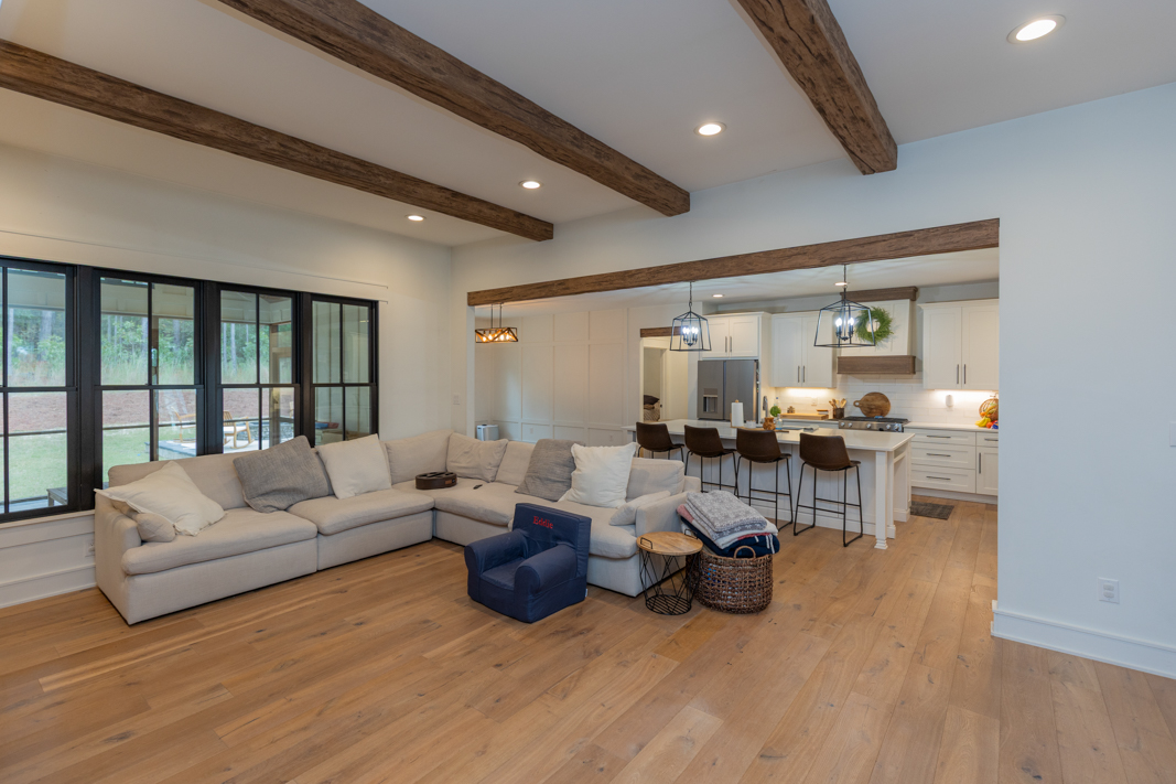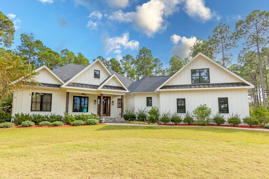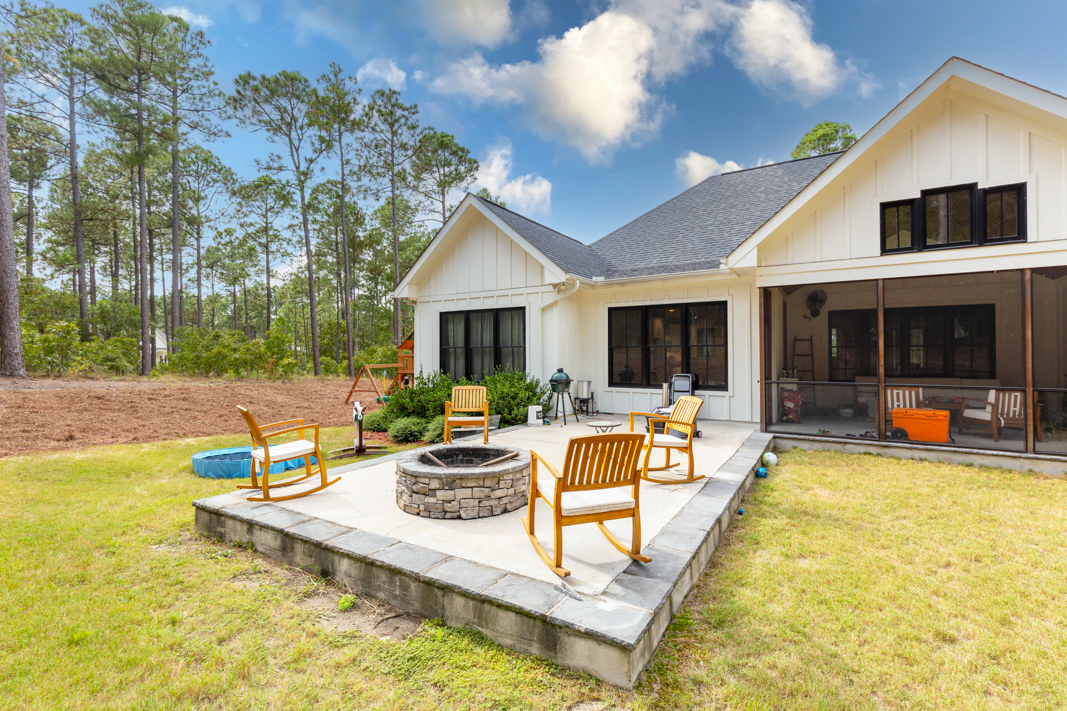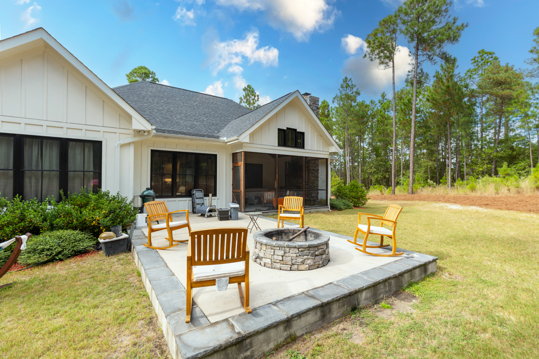 Welcome to this one-of-a-kind custom modern farmhouse, situated on a private 2.5-acre cul-de-sac lot in the prestigious gated community of Grande Pines. With 4 bedrooms, 3.5 baths, and over 2,500 acres of community amenities, this home offers the perfect blend of rustic charm and refined elegance. Step inside to find hardwood floors throughout, rustic wood beams, and a stunning floor-to-ceiling stacked stone gas fireplace anchoring the spacious open living room. The adjoining gourmet kitchen is a chef’s dream, featuring white wood cabinetry, quartz countertops, subway tile backsplash, a large island, gas range, and stainless steel appliances. Enjoy meals in the dining area or step out to the screened-in porch, complete with a stacked stone wood-burning fireplace—ideal for relaxing or entertaining year-round. The outdoor patio with a fire pit makes this home an entertainer’s paradise. The primary suite is a true retreat, offering a spa-like bathroom with a freestanding soaking tub, clapboard walls, a clear glass step-in shower, and an oversized walk-in closet with a center island. Unique features throughout include 150+ year-old reclaimed wood mantels from a local tobacco farm and custom cabinetry in the home office—including a built-in window seat and filing cabinet. Additional highlights include oversized 3-car garage, generator-ready setup, low-maintenance exterior, guest bedrooms connected by a Jack-and-Jill bathroom with double vanities and glass step-in shower (see General Features and Upgrades for lots more). Community amenities include over 830 acres with scenic walking/hiking trails, parks, and access to a sportsman’s cabin—perfect for picnics, reading, or games. Located minutes from Foxfire Resort as well as championship golf courses in the Pinehurst area, schools, shopping, and dining, this home offers the perfect balance of seclusion and convenience. The seller is offering a 2.5% commission to the buyer agent.