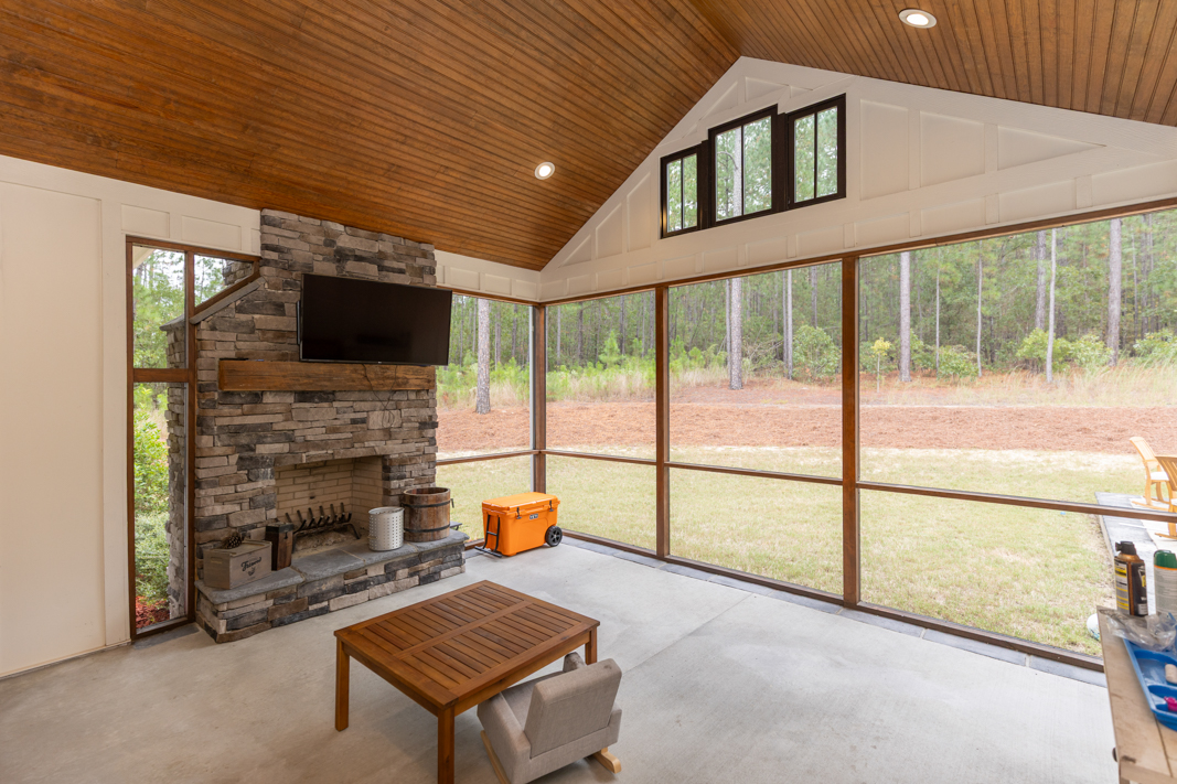- Screened porch mantel is wired for a TV