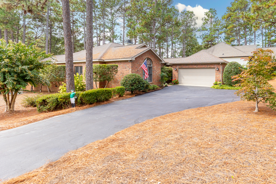 Welcome to this 3-bedroom 2-bathroom brick patio home perfectly positioned on a spacious corner lot overlooking the 6th green of the Talamore Golf Course from the back. Enjoy serene golf course views from the spacious, sunny Carolina room or step outside onto the large back deck, ideal for relaxing or entertaining. This home offers a comfortable, open and flowing layout that makes everyday living a breeze. It features rustic hardwood floors in the main living areas, a spacious living room with a great media center, cozy two-sided gas log fireplace with dark granite surround opening to the breakfast nook and has a well-appointed kitchen. The spacious primary bedroom overlooking the back has a walk-in closet with built-ins and en-suite bath with double sink vanity, jetted tub and step in tiled shower. Both guest bedrooms have walk-in closets as well. The two-car garage has extra space perfect for workshop area. Don’t miss the opportunity to own a home in this desirable golf community! The seller is offering a 2.5% commission to the buyer agent.