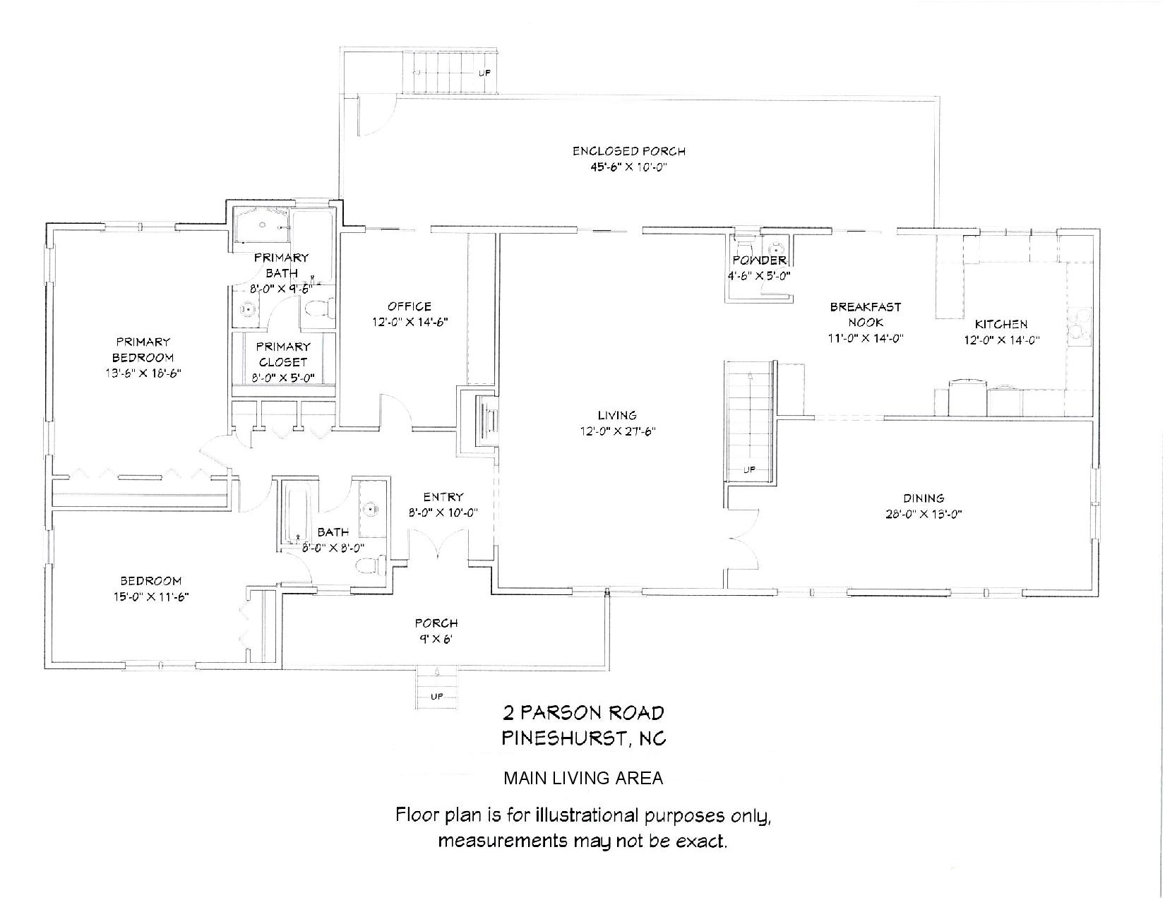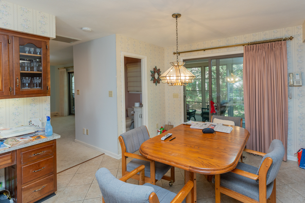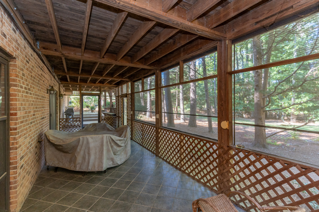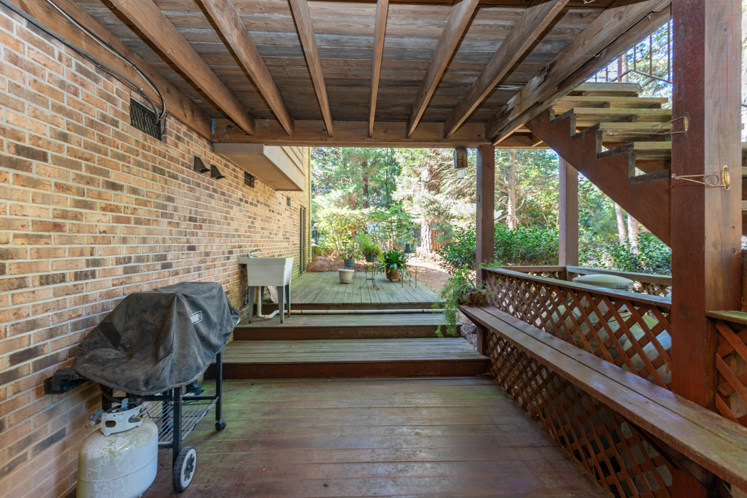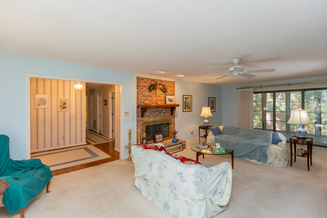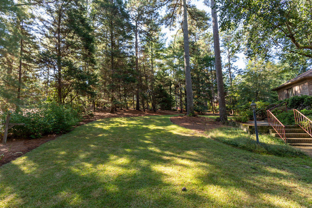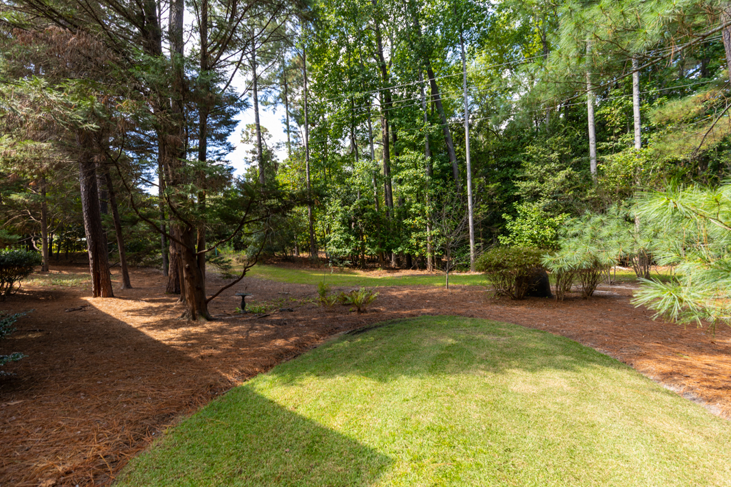 Situated on a beautiful, wooded corner lot in one of Pinehurst’s most established neighborhoods, this spacious brick home offers privacy, character, and convenience. Mature landscaping surrounds the property, creating a serene setting just minutes from the historic Village downtown, shopping and dining. Step inside to a warm and inviting interior featuring a large living room with a classic brick fireplace, raised hearth, and bookcases. Sliding glass doors open to an enclosed porch that spans the back of the home, ideal for enjoying your morning coffee or hosting guests. A generous dining room, accented with hardwood floors and chair rail trim, flows into a cozy breakfast nook with built-in desk and cabinetry. The kitchen features an abundance of rich wood cabinetry, granite countertops, and easy access to the porch and powder room. The spacious primary suite offers two large closets, an en-suite bath with a tiled jetted garden tub, walk-in tiled shower, and walk-in closet. A second main-level guest suite includes a full bath (also accessible from the hallway). There is also an office with gorgeous built-in cabinetry and bookcases and sliding glass doors to the back porch completes the main level. Downstairs, the fully finished lower level features a large family room with a second brick fireplace, ample closet space, a full bath, and laundry area, perfect as an in-law suite, guest space, or rec room. Sliding doors lead to a covered porch and deck, perfect for outdoor entertaining. A walk-in crawl space provides even more storage options. This beautifully maintained home combines timeless features with modern comforts, all in a prime Pinehurst location. The seller is offering a 3% commission to the buyer agent.